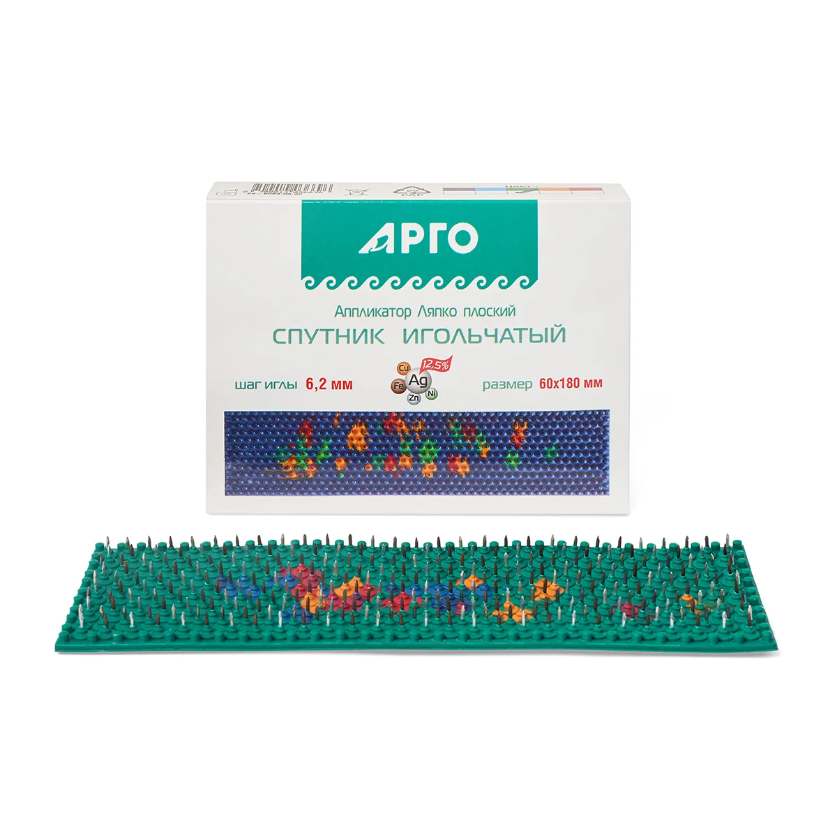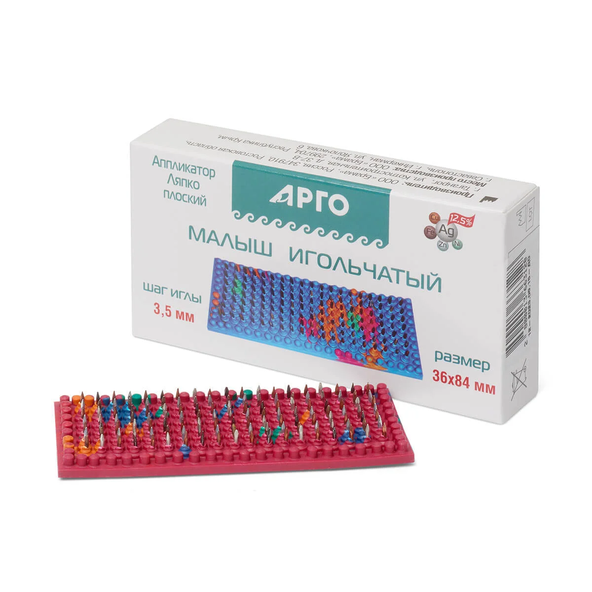 ПредзаказАппликатор представляет собой эластичную резиновую пластину c закрепленными на ней иглами из необходимых для организма металлов: цинка, меди, железа, никеля и серебра.