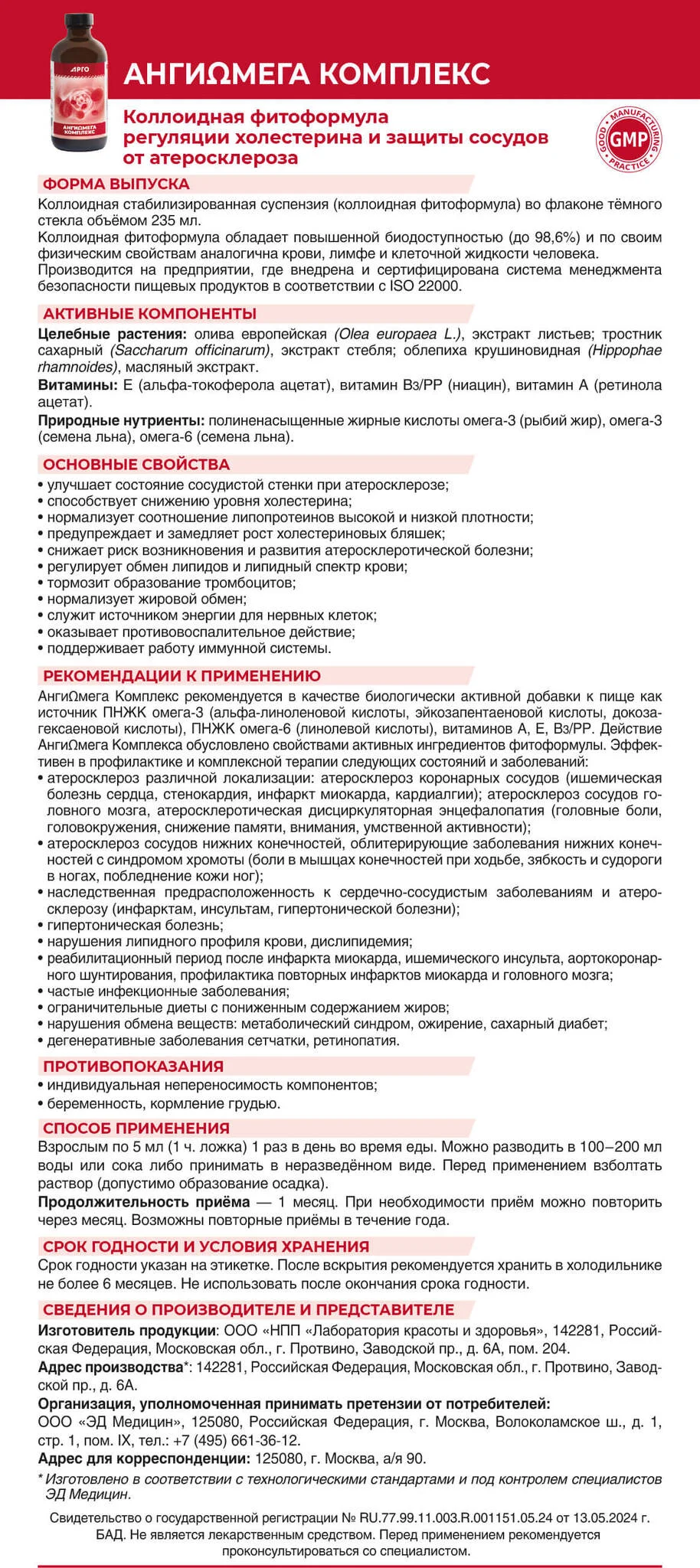АнгиОмега Комплекс коллоидный, Эд Медицин (Арго), 235 мл