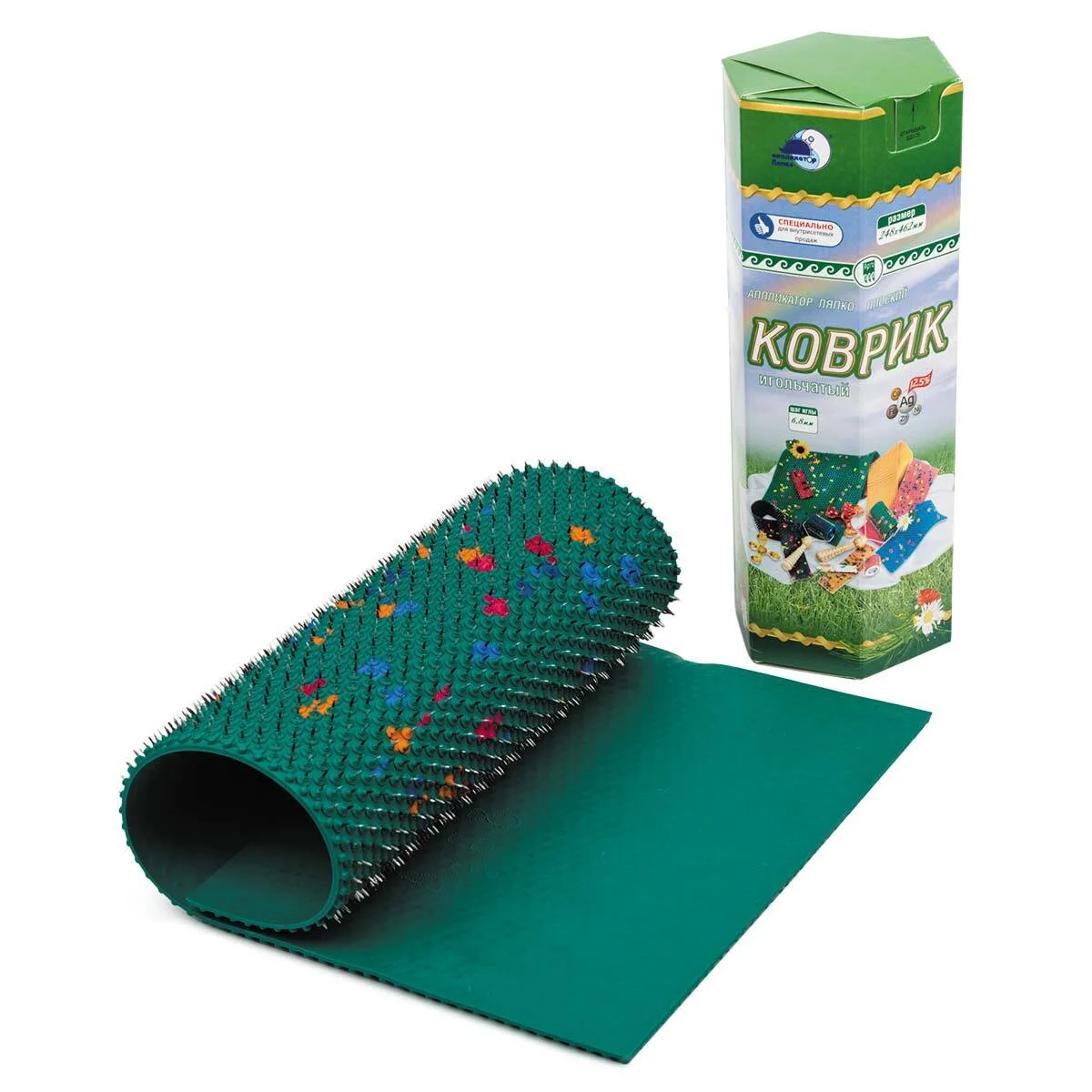 Самый большой и популярный коврик. Применяется для аппликаций на спину, в виде коврика под ноги, для брюшной и грудной полости. Имеет самый эффективный шаг игл.