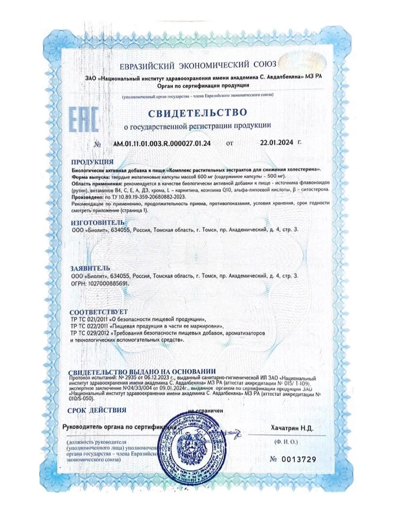 Способствует снижению риска развития атеросклероза; улучшает холестериновый и углеводный обмен; нормализует работу сердечно-сосудистой системы: улучшает микроциркуляцию, уменьшает проницаемость капилляров, укрепляет сосудистую стенку, оказывает антиоксидантное действие, предупреждает развитие воспалительных реакций.