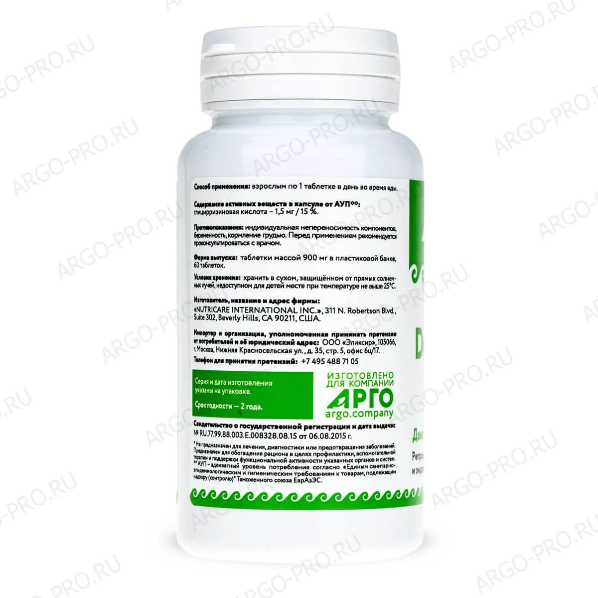 Форма выпуска: Таблетки массой 900 мг, 60 капсул в пластиковой баночке.