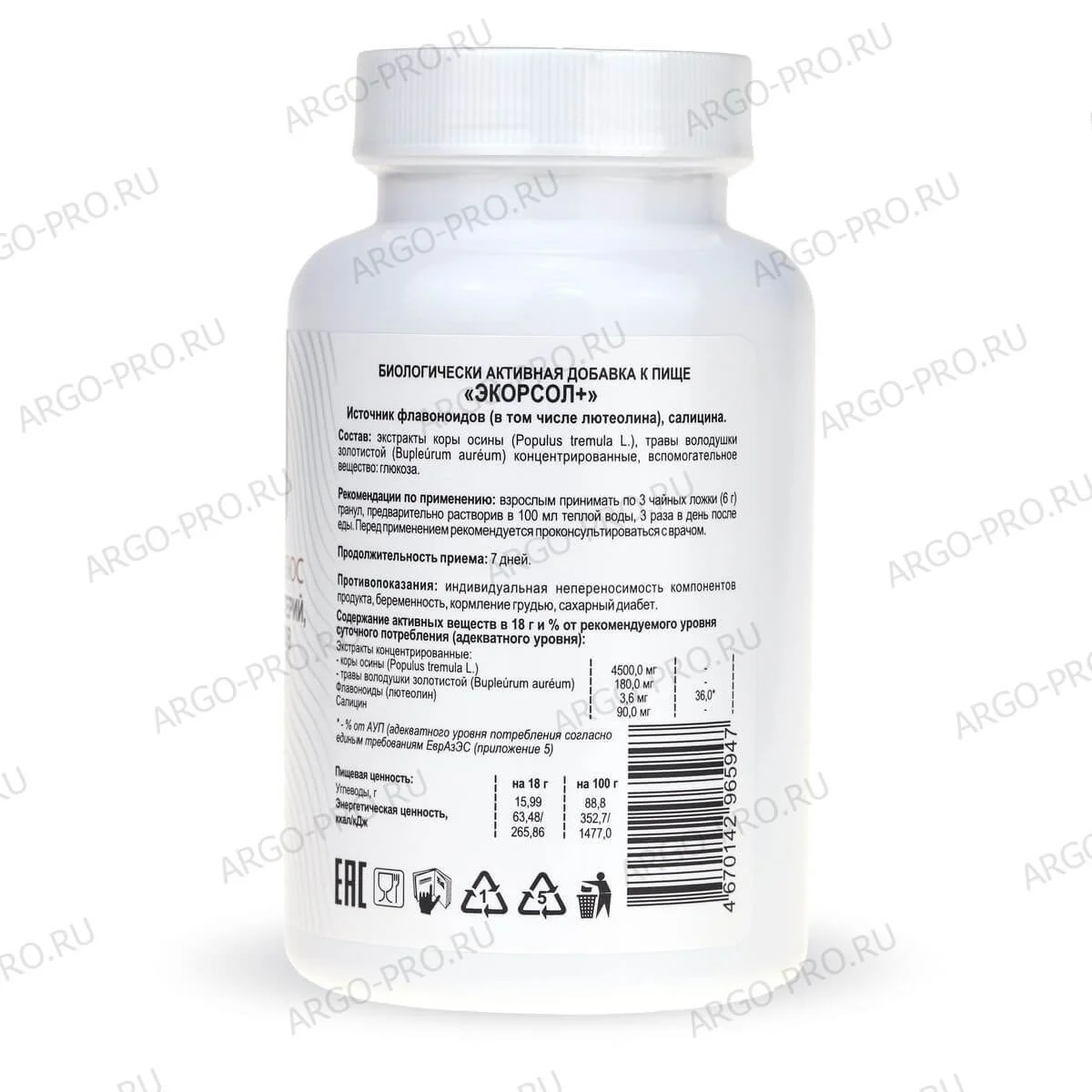 БАД Экорсол+ плюс гранулы экстракта коры осины, Биолит (Арго), 120 г