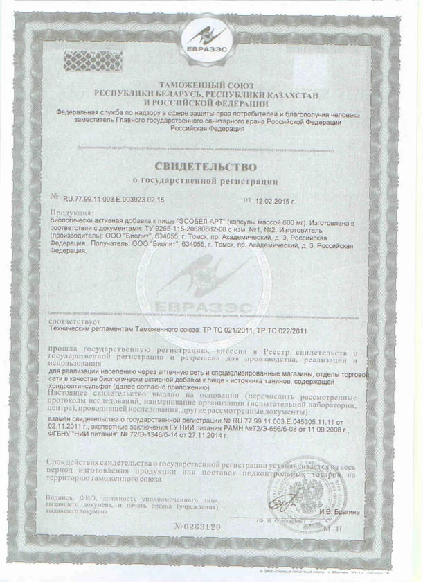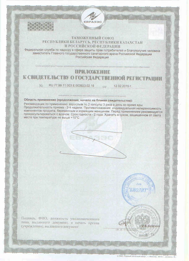 Способ применения: Взрослым по 2 капсулы 3 раза в день во время еды. Продолжительность приема – 3–4 недели. Перед применением рекомендуется проконсультироваться с врачом.