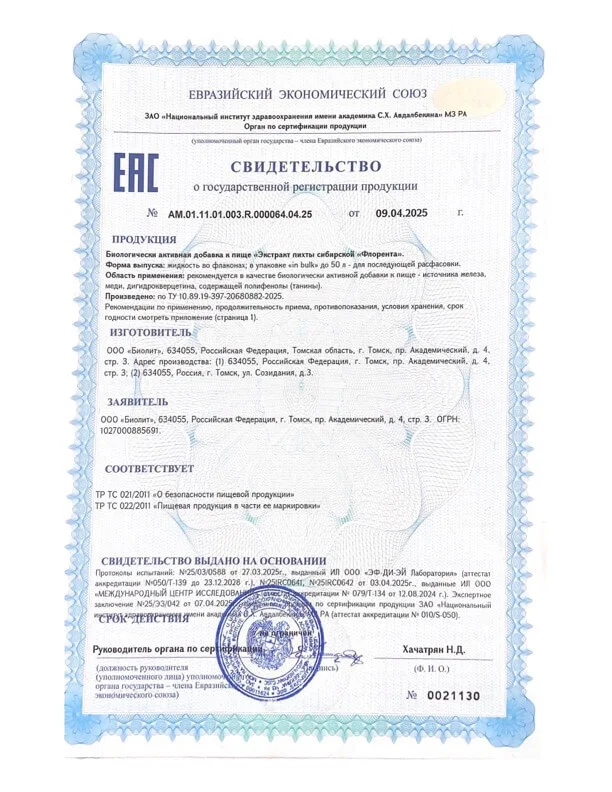 БАД Флорента (Экстракт пихты), Биолит (Арго), 500 мл