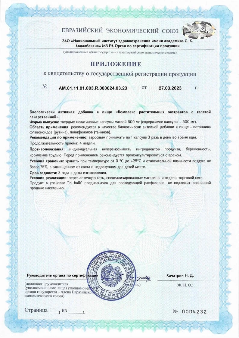 Состав: Сухие экстракты травы галеги, плодов шиповника майского, корня лопуха большого, корней одуванчика лекарственного, листьев крапивы двудомной.