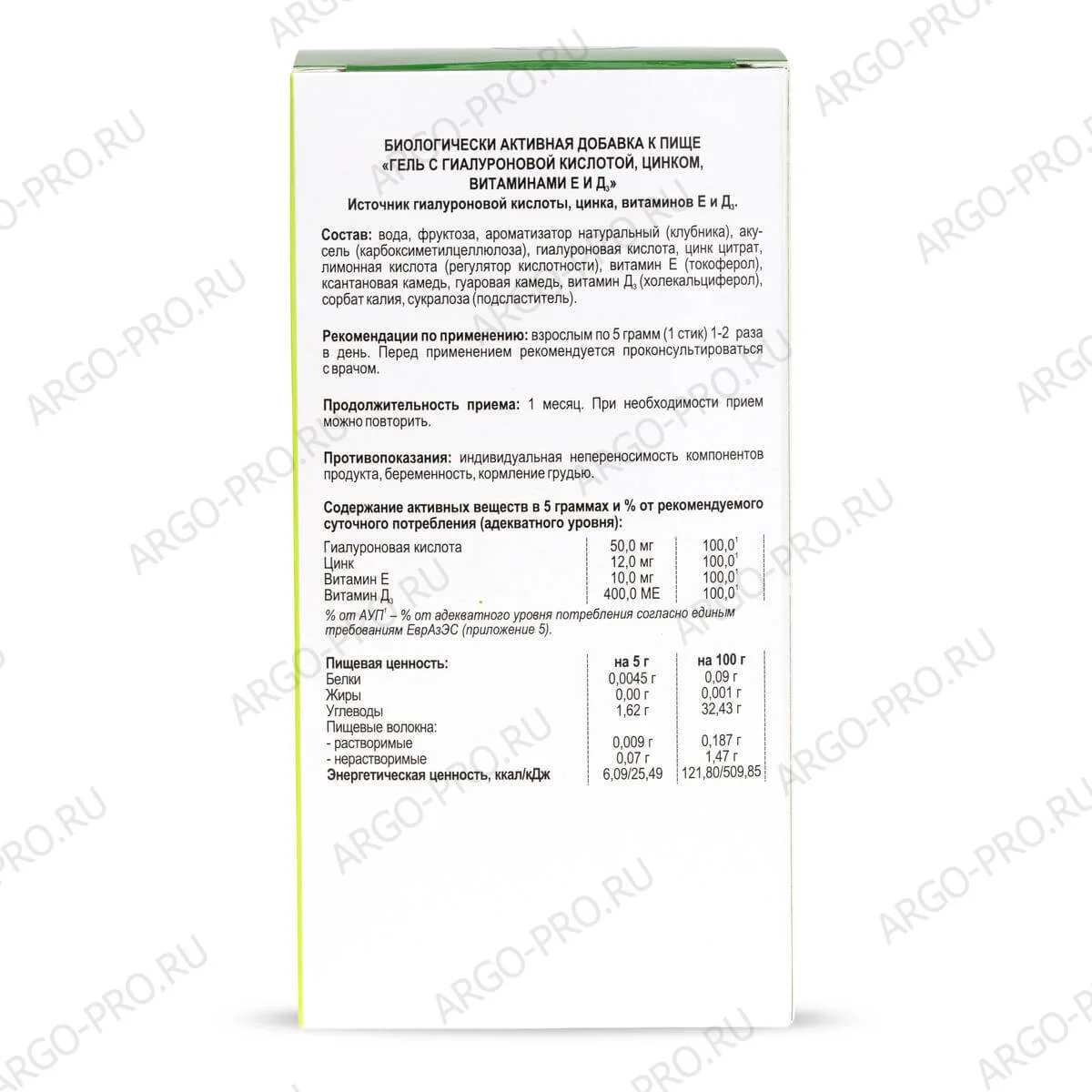 БАД Гель с гиалауроновой кислотой, цинком, витаминами Е и Д3, Биолит (Арго), 20 стиков