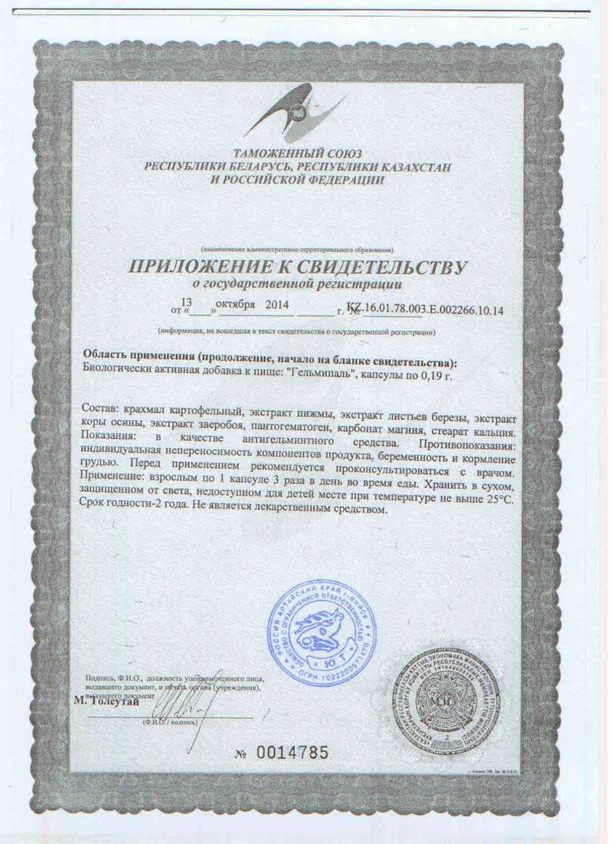 БАД "Гельмипаль" народные средства от паразитов включают в себя растения и травы. Растительные компоненты, входящие в состав препарата Гельмипаль обеспечивают ему антигельминтные свойства широкого спектра действия, пантогематоген обеспечивает быстрое восстановление организма. Препарат действует мягко, безопасно и эффективно.