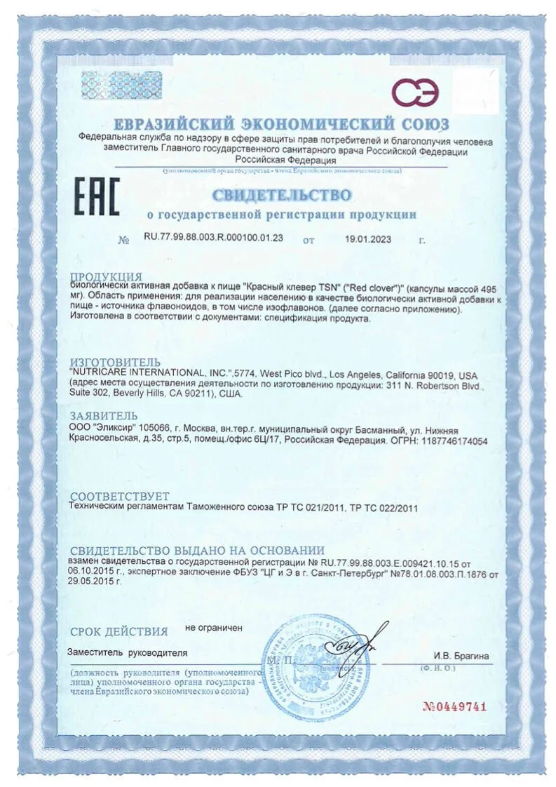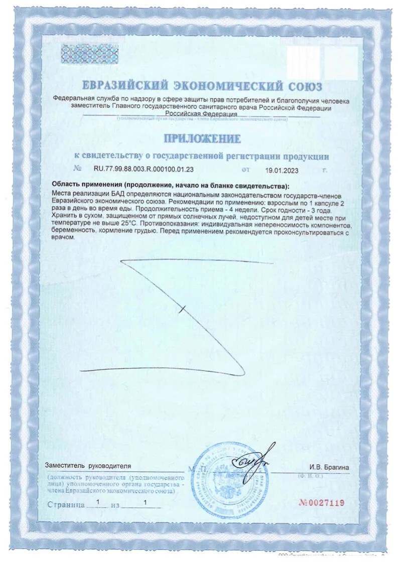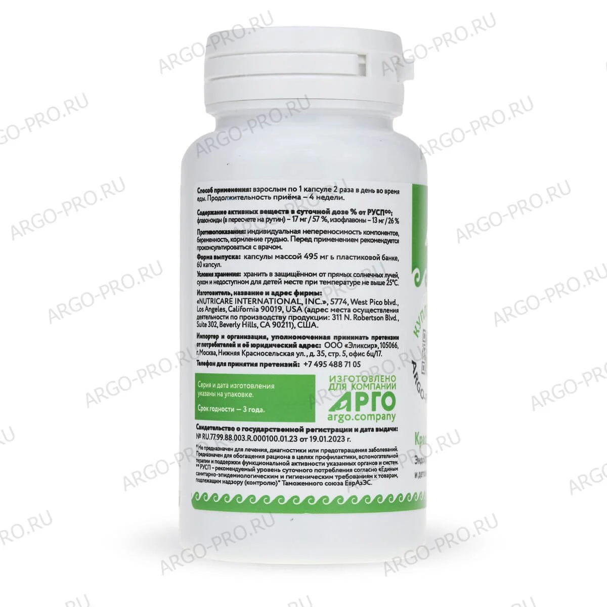 Способ применения: Взрослым по 1 капсуле 2 раза в день во время еды. Продолжительность приема – 4 недели. В 2 капсулах содержится: флавоноидов в пересчете на рутин – 17 мг (57 % от адекватного уровня потребления в сутки), изофлавонов – 13 мг (26 % от адекватного уровня потребления в сутки).
