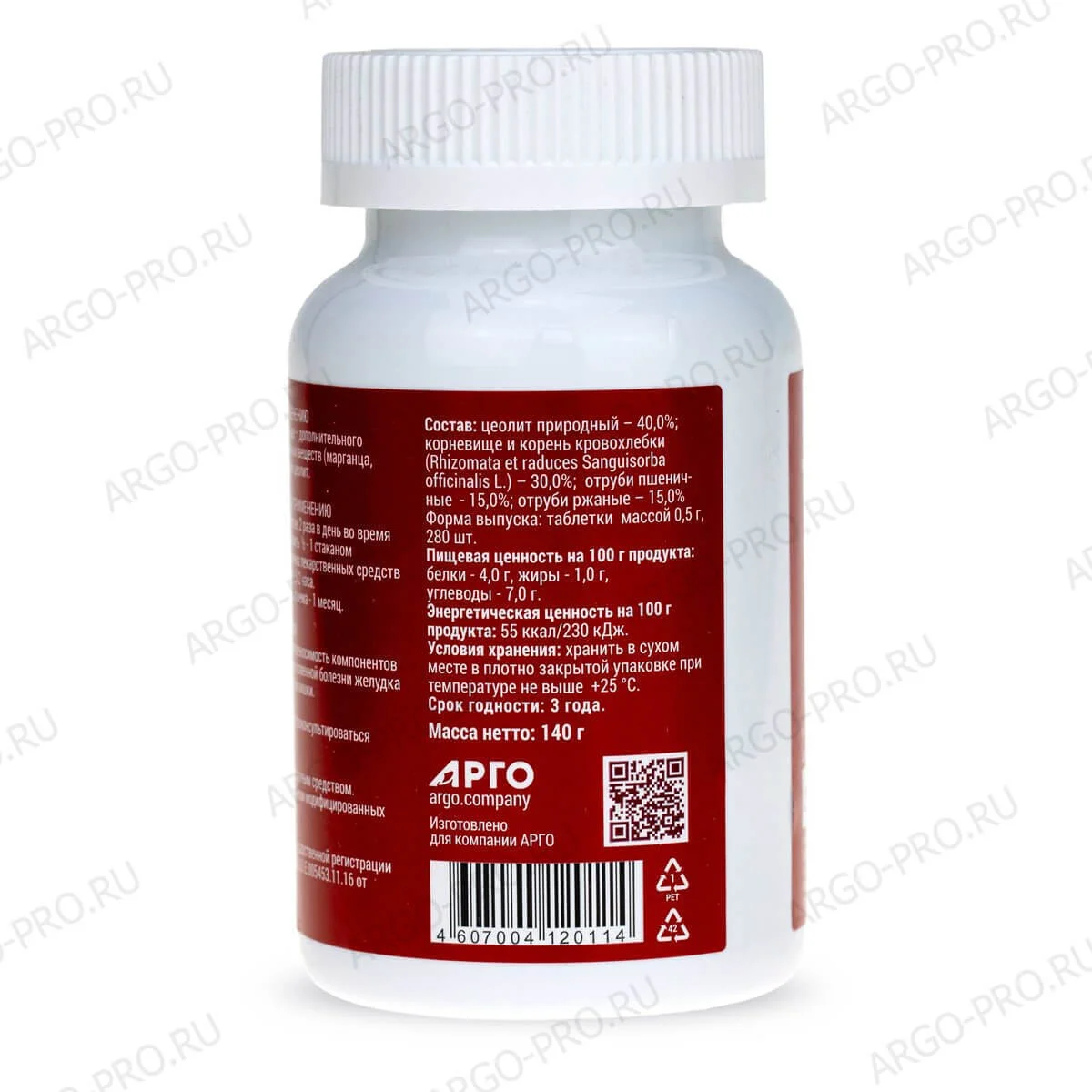 Форма выпуска: 280 таблеток массой 0,5 г в упаковке (140 г).