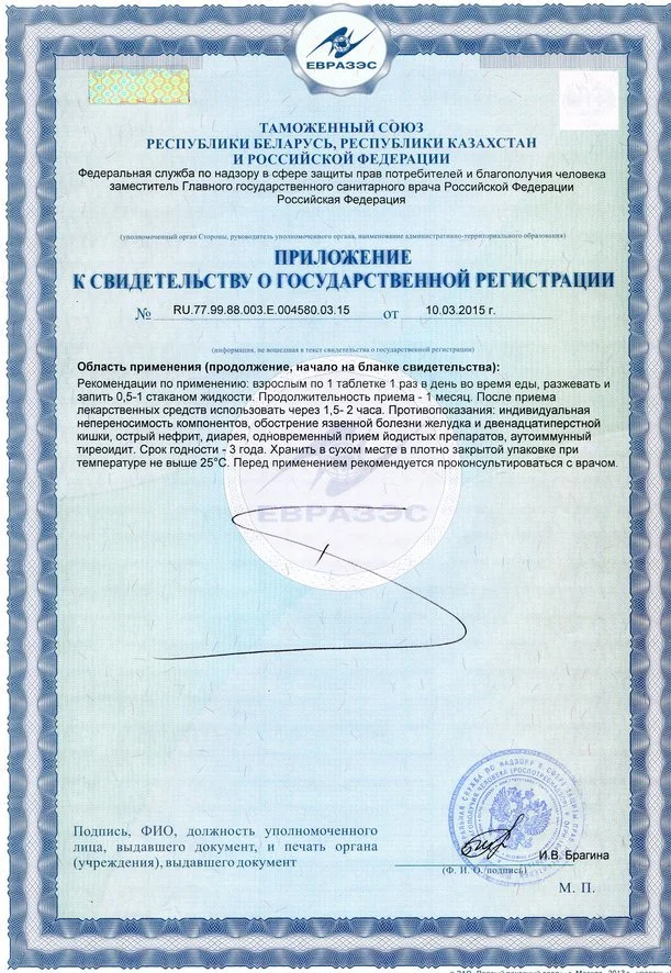 Противопоказания: Индивидуальная непереносимость компонентов продукта, обострение язвенной болезни желудка и двенадцатиперстной кишки, острый нефрит, диарея, одновременный прием йодистых препаратов, аутоиммунный тиреоидит.