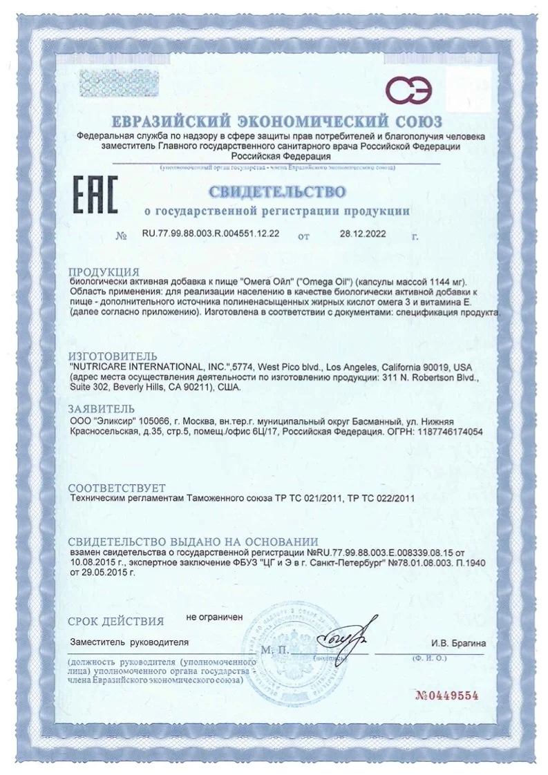 Омега Ойл – капсулы содержат рыбий жир (омега 3), являются источником витамина D, А и Е и эффективным общеукрепляющим средством. Комплекс полиненасыщенных жирных кислот омега-3 и витамина Е для профилактики и поддержания нормальной деятельности сердечно-сосудистой системы, для снижения уровня холестерина, для улучшения состояния клеточных мембран, для оптимизации липидного обмена, для улучшения мозговой деятельности, для эффективного заживления ран, рубцов, язв, повреждений кожи и слизистых оболочек.