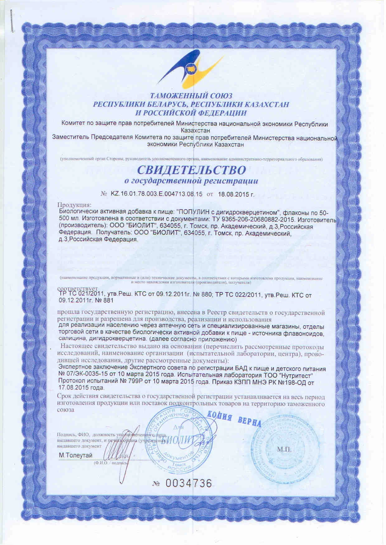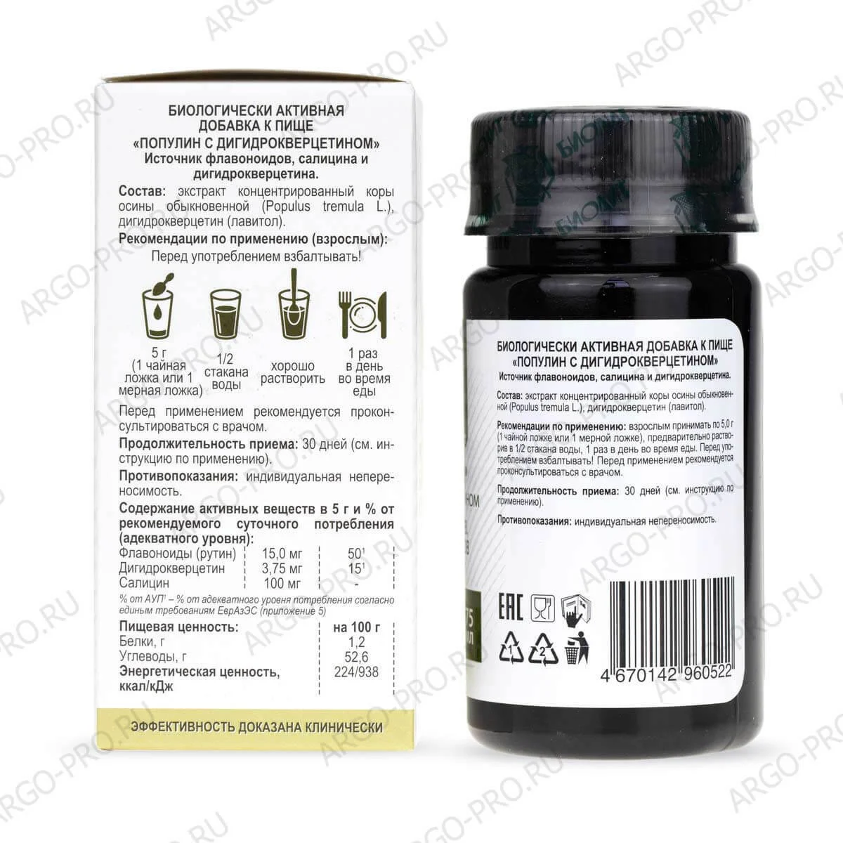 Состав: Концентрированный водный экстракт коры осины (Populus tremulae), дигидрокверцетин (лавитол).