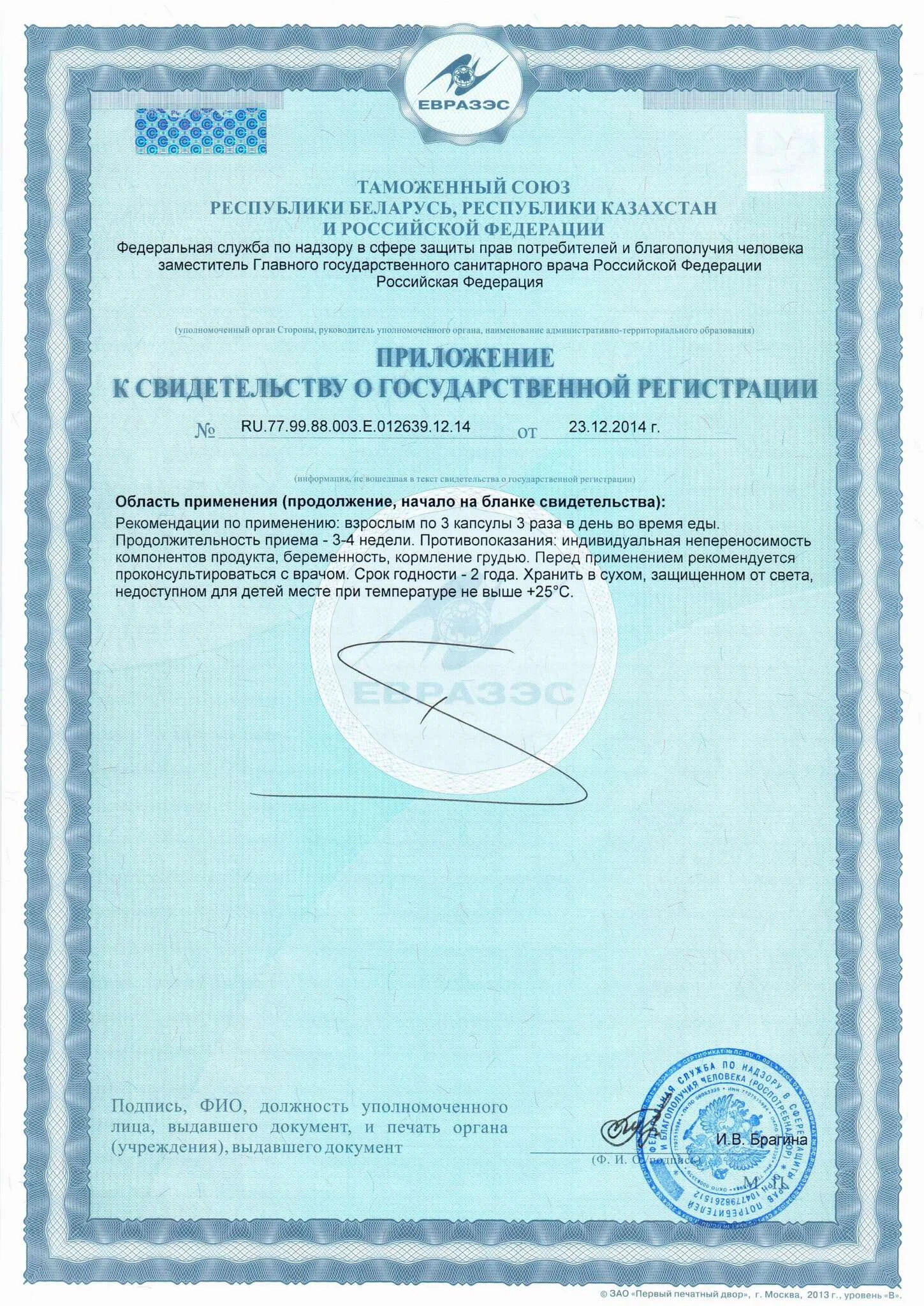 Способ применения: Взрослым принимать по 3 капсулы 3 раза в день во время еды. Запить водой (100–200 мл). Продолжительность приема – 3–4 недели. В 9 капсулах продукта содержание пищевых волокон составляет 1,57 г (7,5 % от рекомендуемого суточного потребления – РСП), в том числе растворимых волокон – 0,5 г (25 % от РСП).