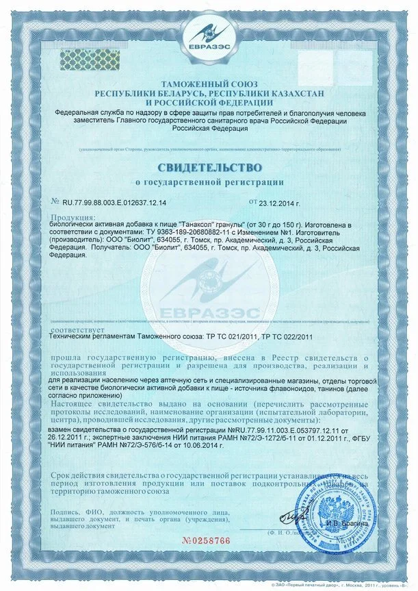 БАД Танаксол форте, Биолит (Арго), 30 капс