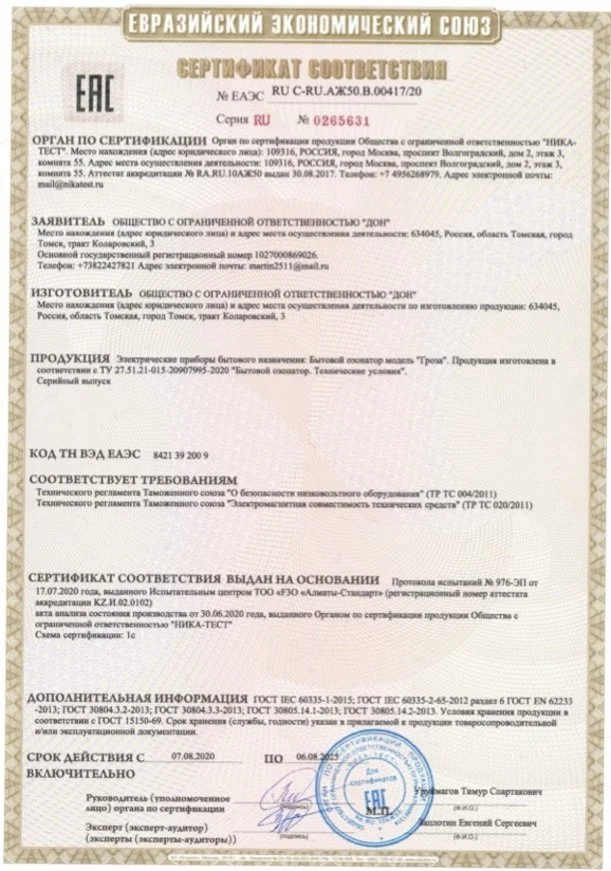 Производителем бытового озонатора ГРОЗА является компания ДОН.