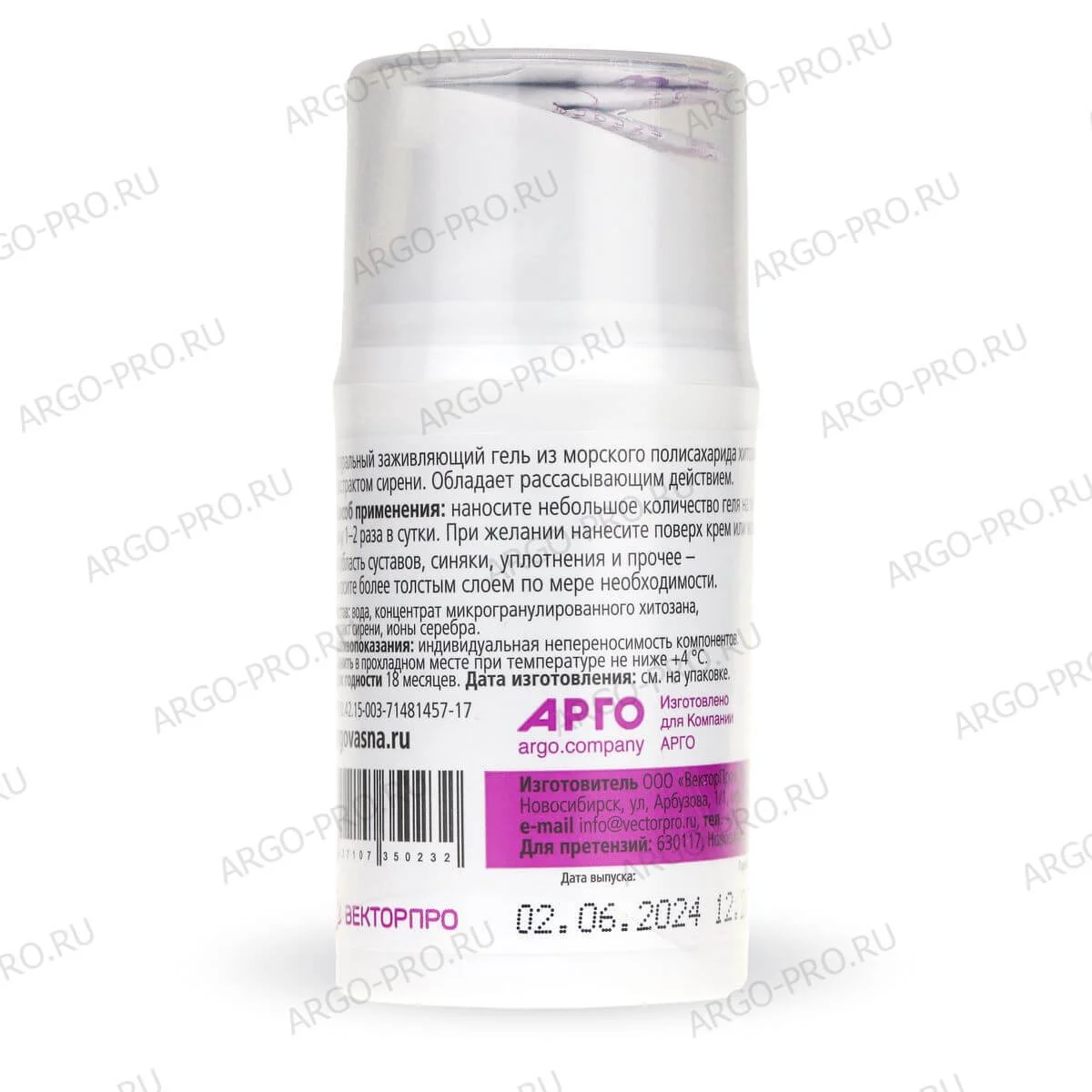АргоВасна Сирень с хитозаном – противовоспалительное средство, эффективно при воспаления суставов и позвоночника, для лечения уплотнений на коже после инъекций, для профилактики и лечения пролежней. Гель устраняет застой в тканях, эффективен при целлюлите, улучшает кровоснабжение и гидратацию кожного покрова, увеличивает его упругость, делает кожу гладкой. АргоВасна Сирень стимулирует клеточный обмен и активизирует функциональную работу клеток иммунной системы. Способствует быстрому восстановлению при физических и спортивных нагрузках. Эффективен при ушибах, растяжениях связок, гематомах, мышечном перенапряжении.