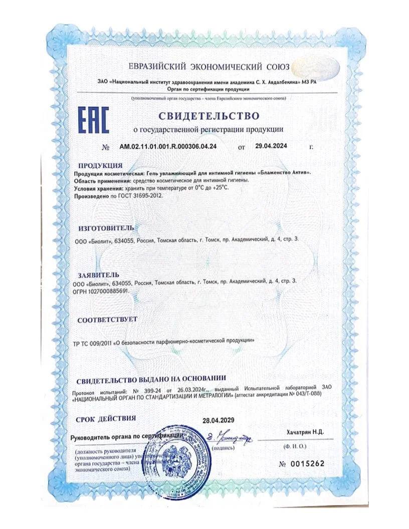 Гель «Блаженство Актив» Биолит предназначен для гигиенического ухода интимной зоны. Восполняет недостаток естественного увлажнения, улучшает трофику и регенерацию тканей, способствует заживлению микротрещин, поддерживает естественный уровень pH влагалища, оказывает противогрибковое и противовоспалительное действие, улучшает качество сексуальной жизни.