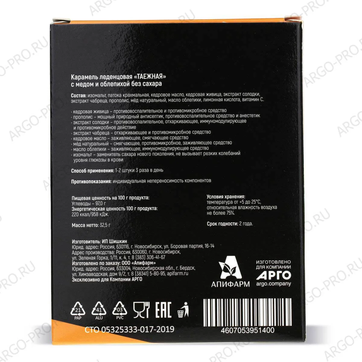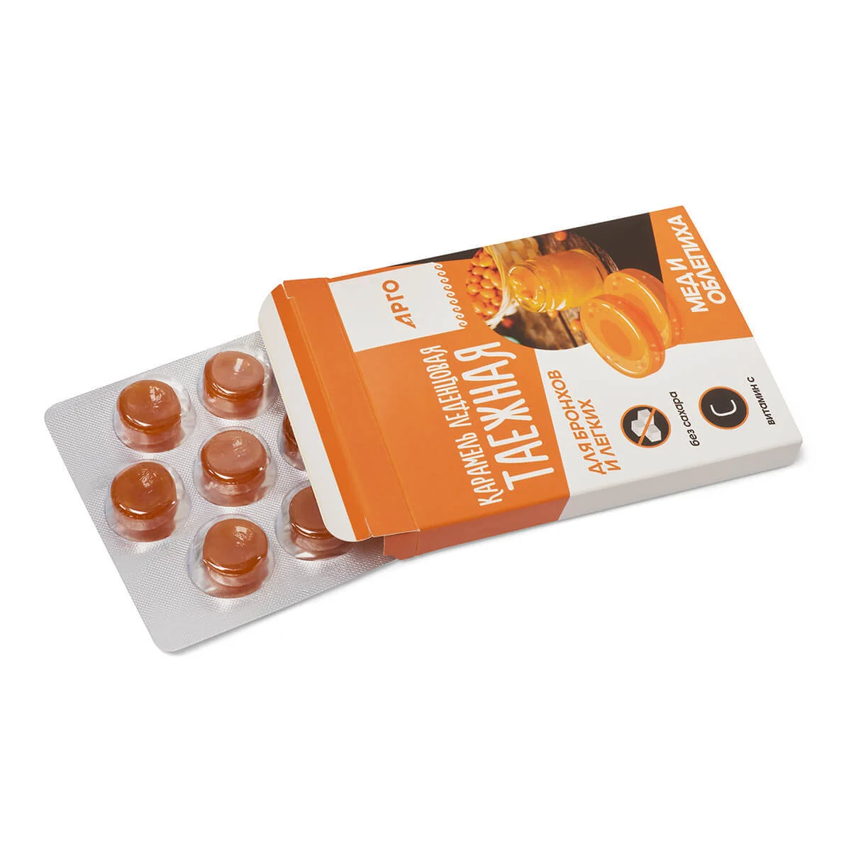 Карамель леденцовая «Таежная» для бронхов и легких, мед и облепиха.