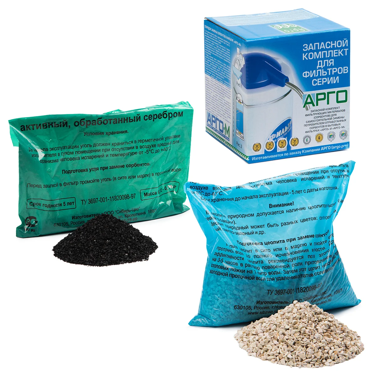 Комплект запасной для фильтра «Арго» предназначен для самостоятельной замены фильтрующего материала фильтрах «Арго» и «Арго-М». В состав комплекта входит: кольцо уплотнительное, природный минерал цеолит, уголь активированный импрегнированный серебром.