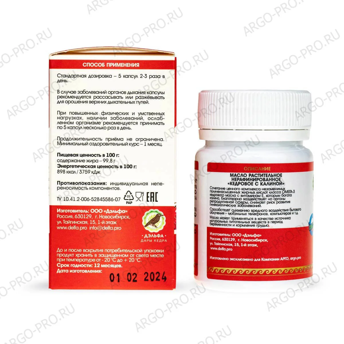 Кедровое масло с калиной с витамином Е, Дэльфа (Арго), 100 капс