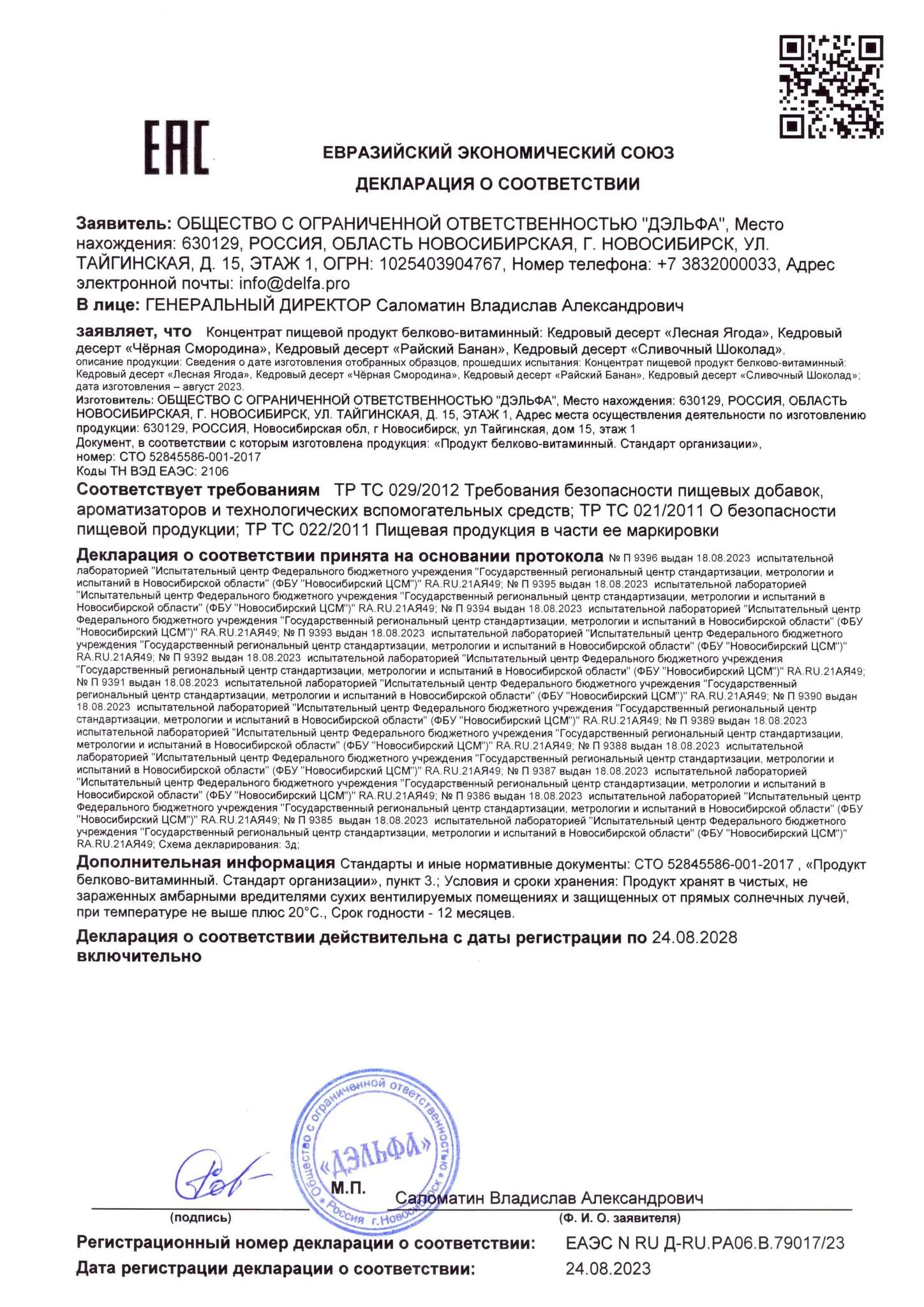 Состав: Сыворотка молочная сухая деминерализованная, эритрит, молоко сухое обезжиренное, ягоды смородины сушеные измельченные, инулин цикория, жмых миндаля, гуаровая камедь, жмых кунжута, яблоко сушеное измельченное, жмых кедрового ореха, ароматизатор «Смородина» натуральный, янтарная кислота, стевиозид, каррагинан.