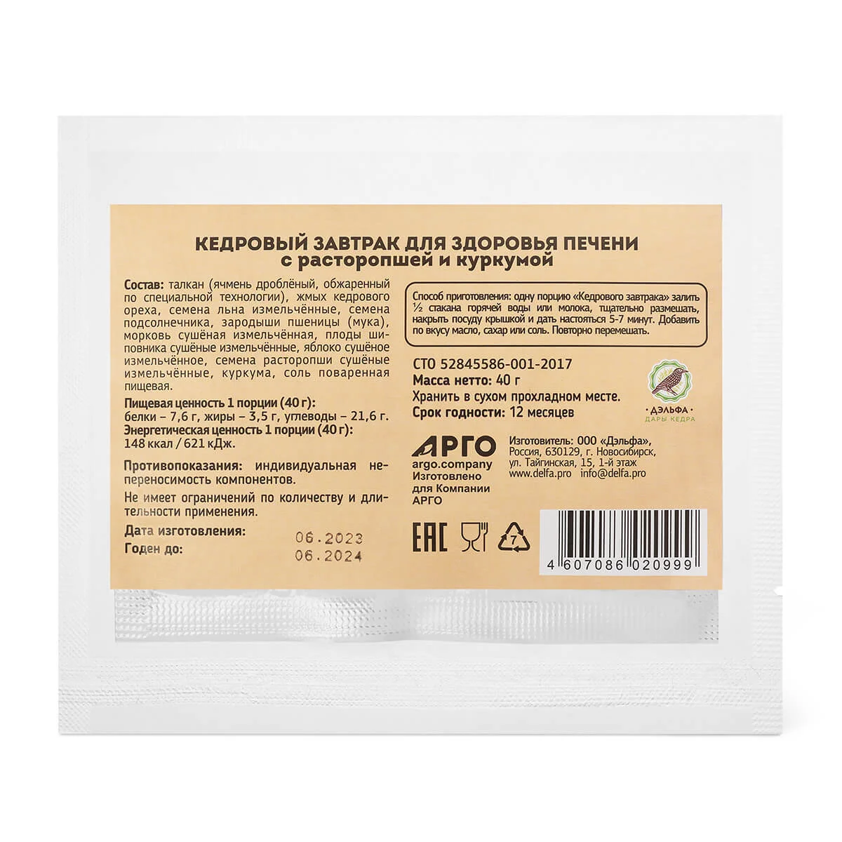 Кедровый завтрак для печени, Дэльфа (Арго), 40 г