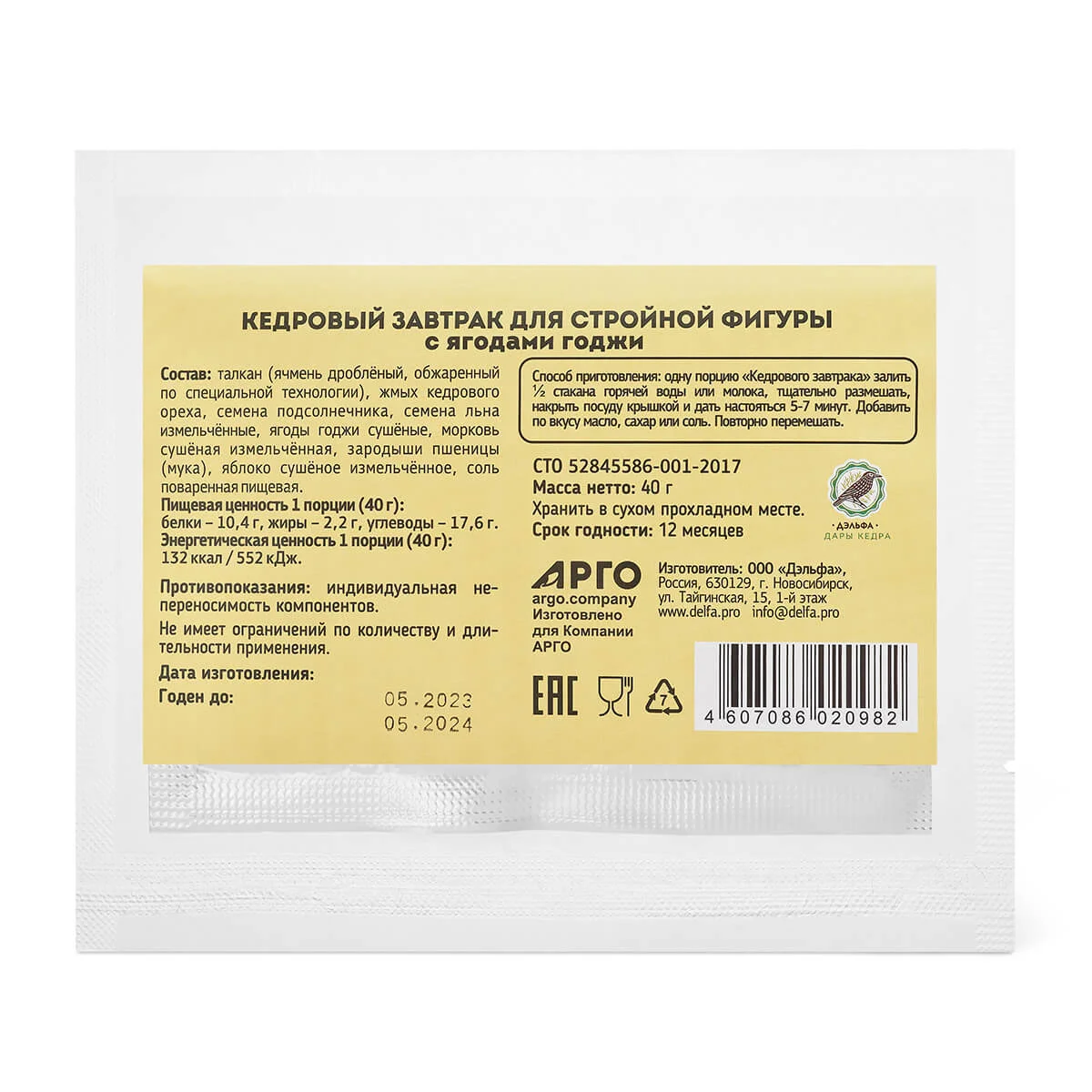 Кедровый завтрак для стройности, Дэльфа (Арго), 40 г