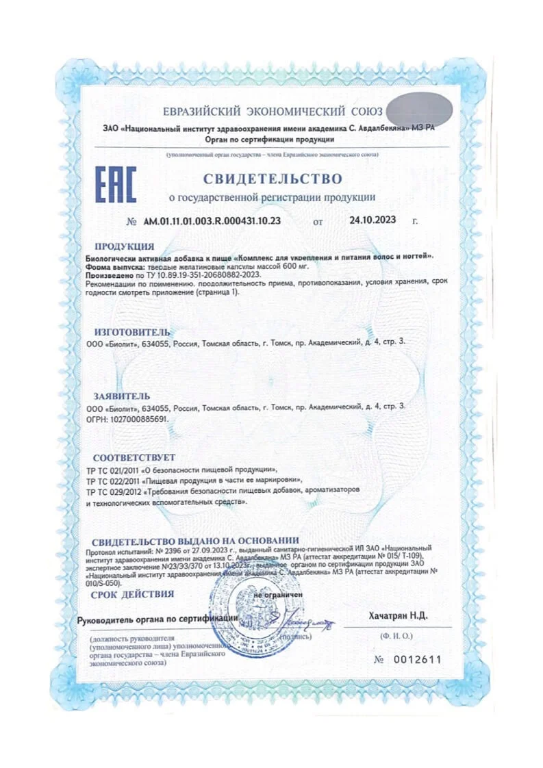 Современный продукт для укрепления волос и ногтей, стимуляции их роста и улучшения качества.