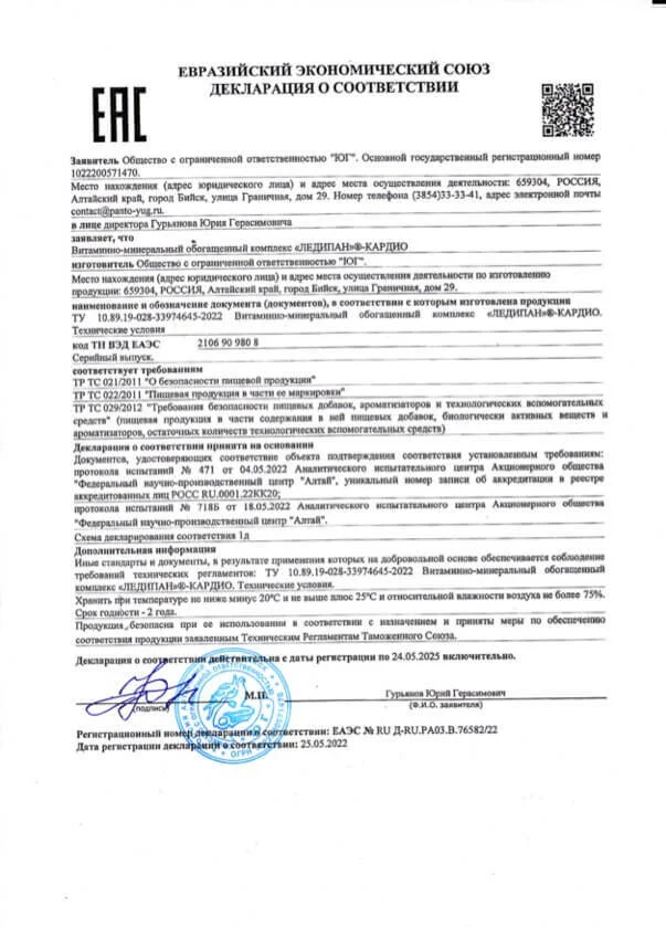Компоненты комплекса Ледипан-кардио обладают многофункциональной направленностью и могут мягко и безопасно снизить риск развития сердечно-сосудистых патологий.