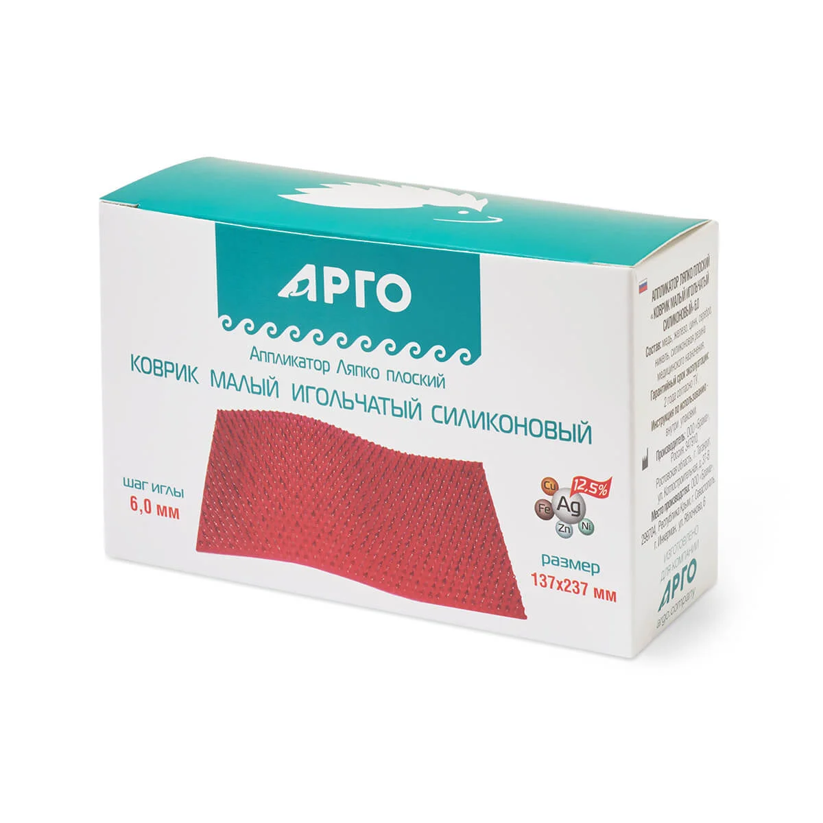 Отличительной особенностью аппликатора «Коврик малый силикон» является улучшенный состав резины. Размер коврика и наименьшее среди «ковриков» расстояние между иглами - 6,0 мм, позволяет локально воздействовать на небольшую площадь тела. Эти свойства определяют высокую комфортность применения.