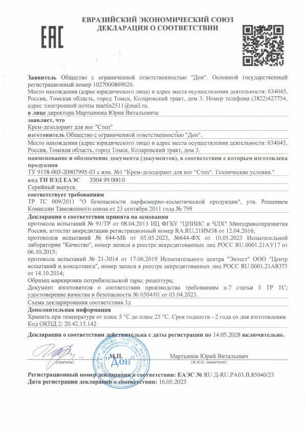 Неприятный запах ног, повышенная потливость и результат – грибок на ногах проблема многих. Для эффективного устранения используйте Степ – крем-дезодорант для ног. Он избавит от потливости и неприятного запаха ног, эффективен от грибков на ногах, лечит микоз стоп и заживляет ранки, потертости, трещины на ногах.