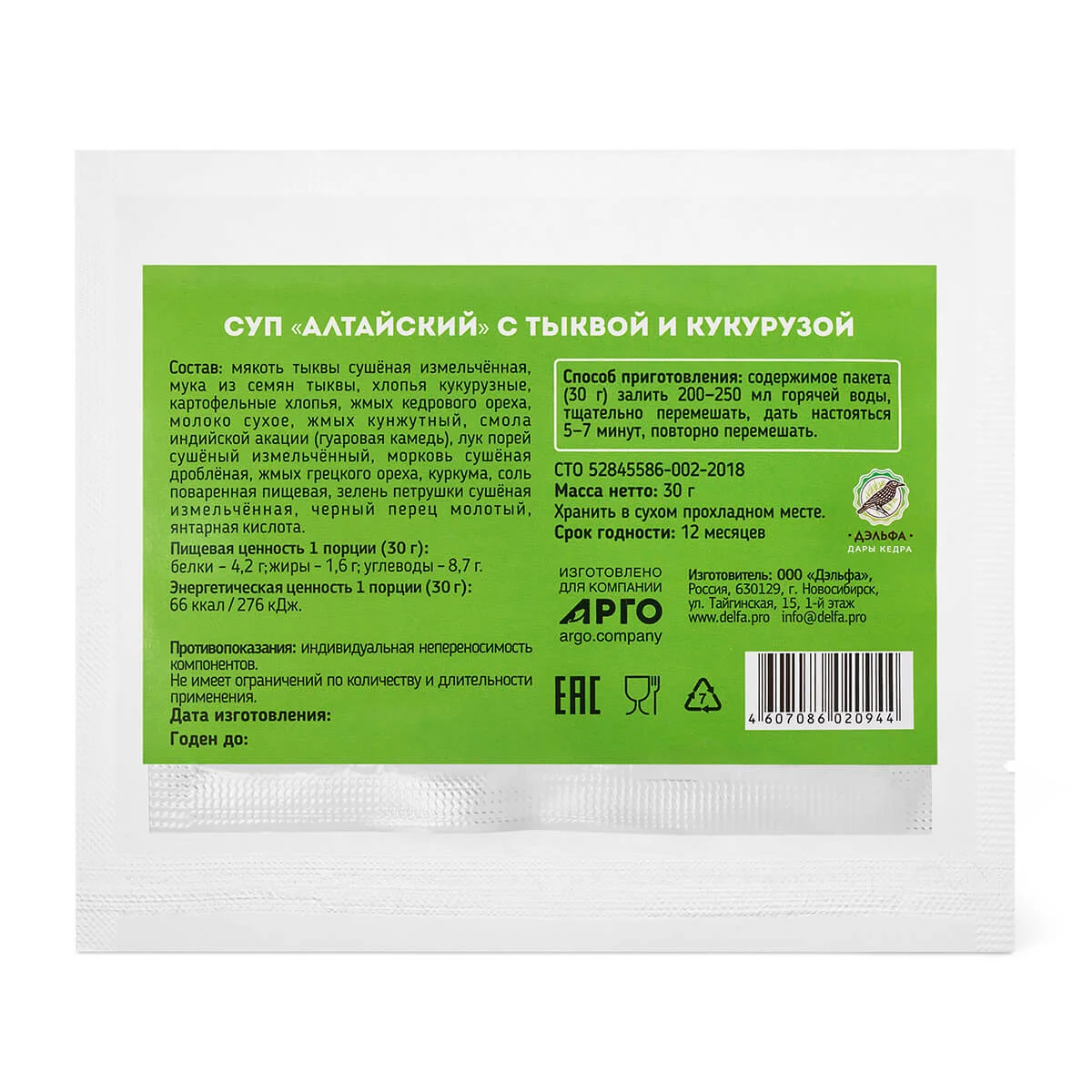 Крем суп Алтайский с тыквой и кукурузой, Дэльфа (Арго), 30 г