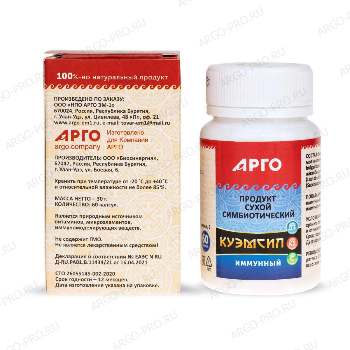 КуЭМсил Д3+К2 имунный, Арго ЭМ-1, 60 капс