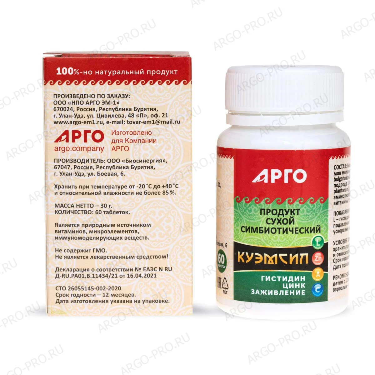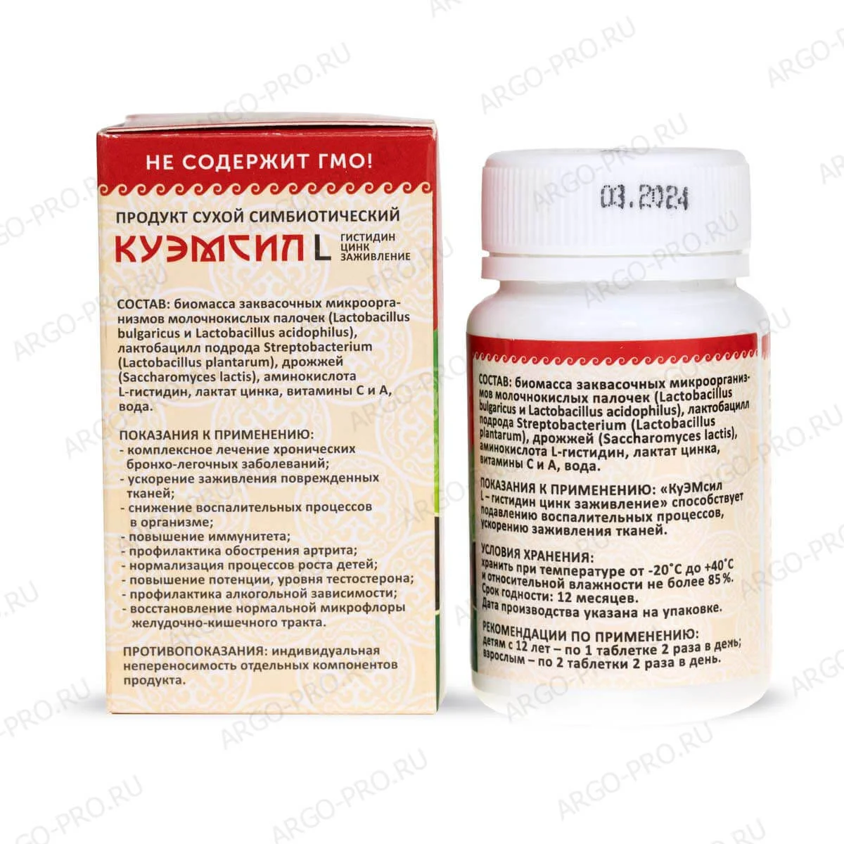 КуЭМсил Л-гистидин цинк заживление, Арго ЭМ-1, 60 таб