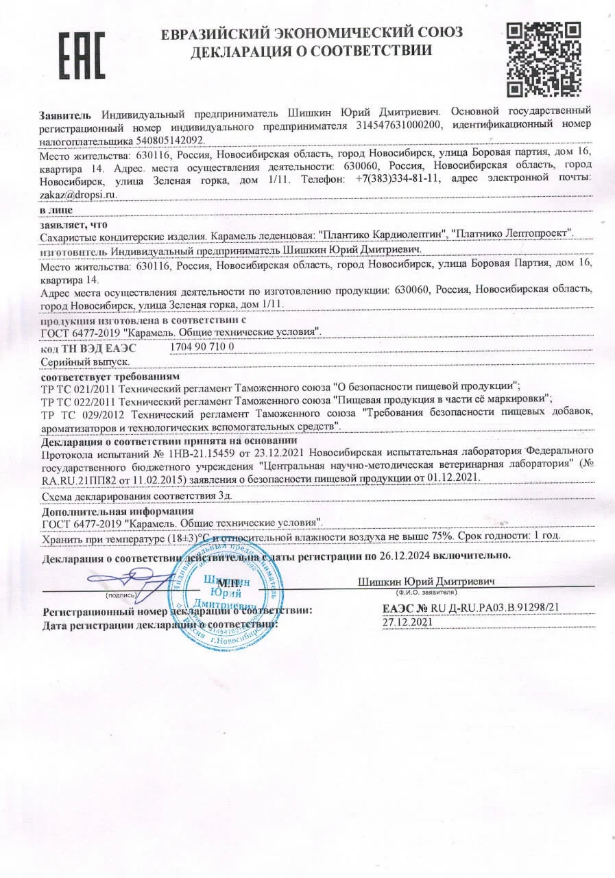 Состав: Сахар, патока, кислота лимонная, БАД «Кардиолептин», ароматизатор идентичный натуральному.