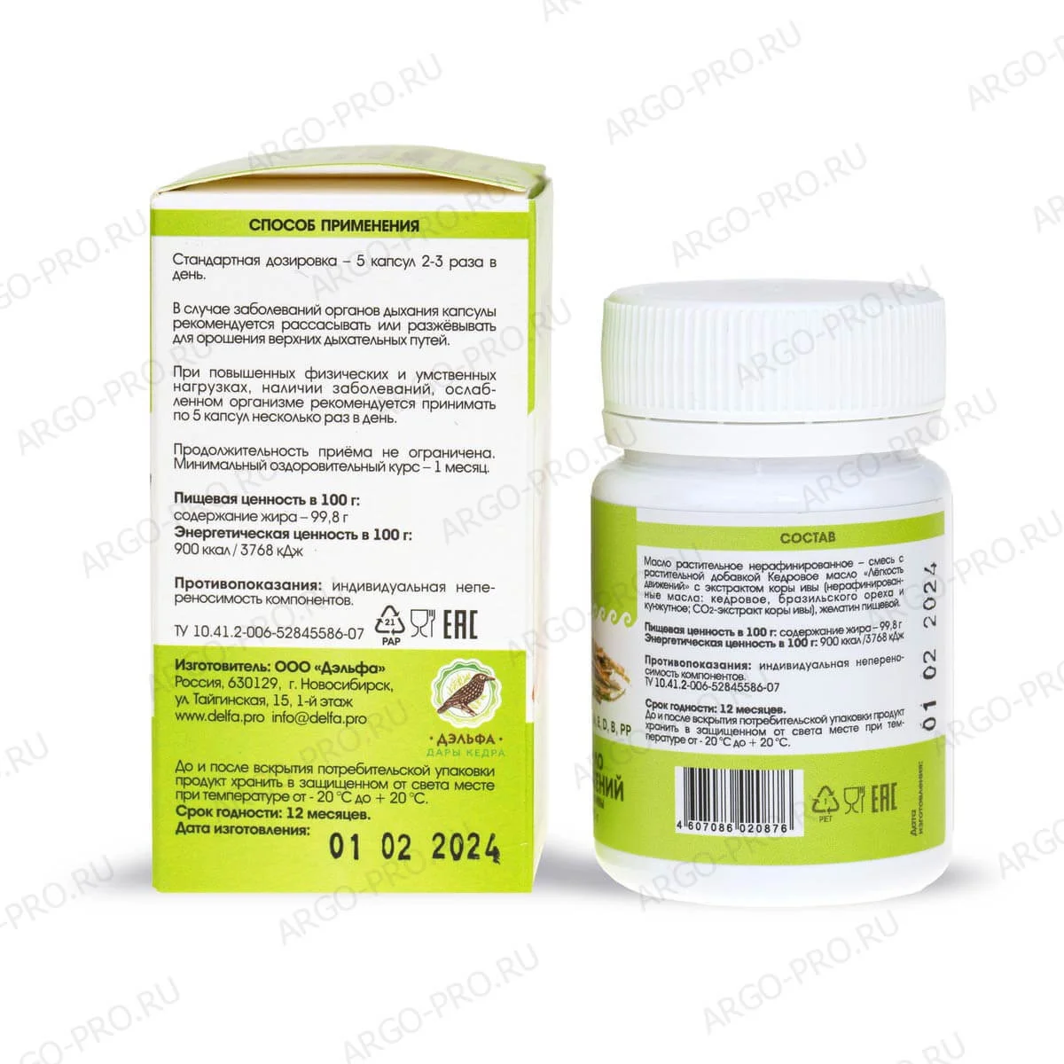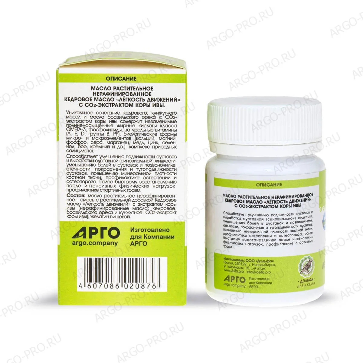 Масло кедровое Легкость движений с экстрактом коры ивы, Дэльфа (Арго), 100 капс