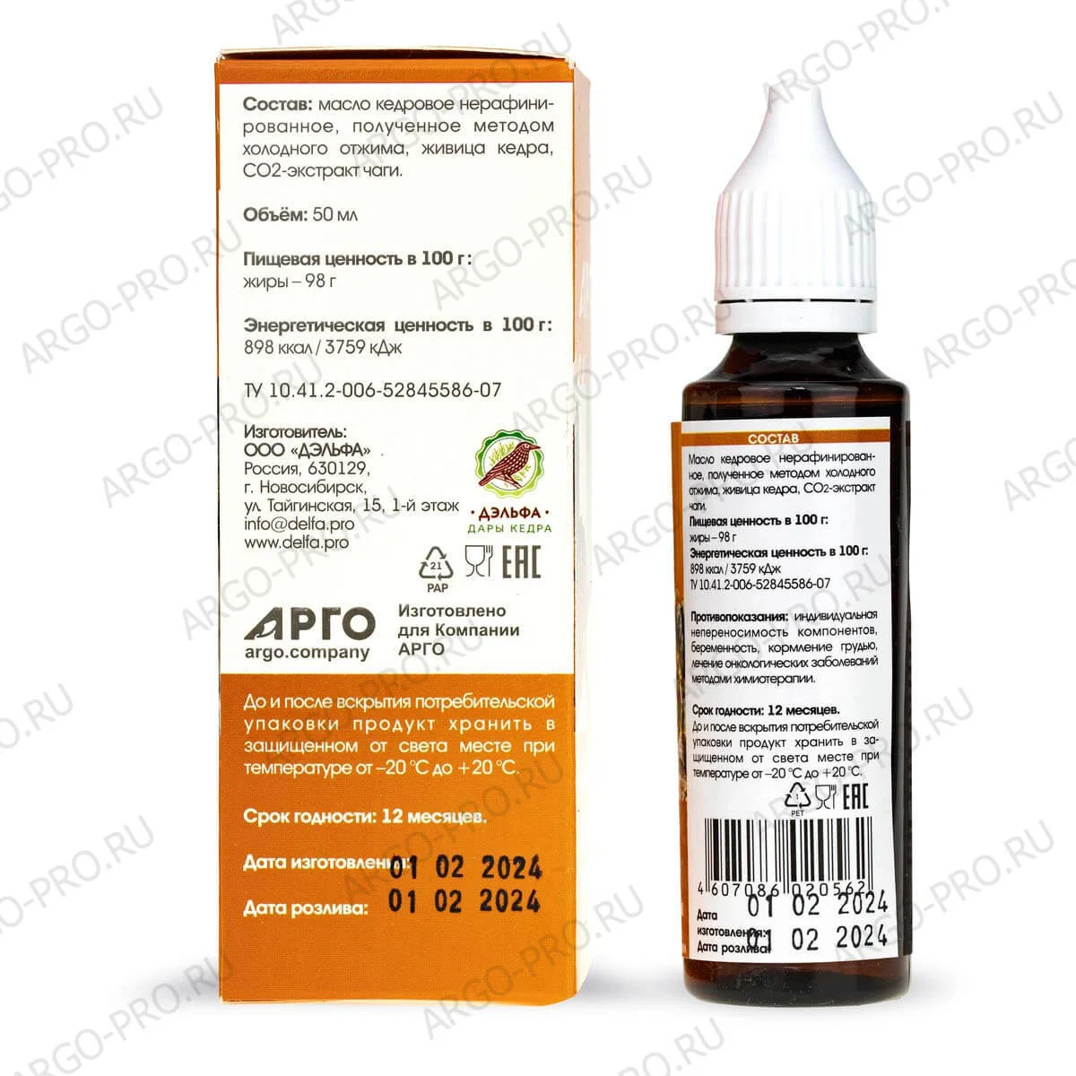 Масло кедровое Живица кедра 12,5% с чагой, Дэльфа (Арго), 50 мл