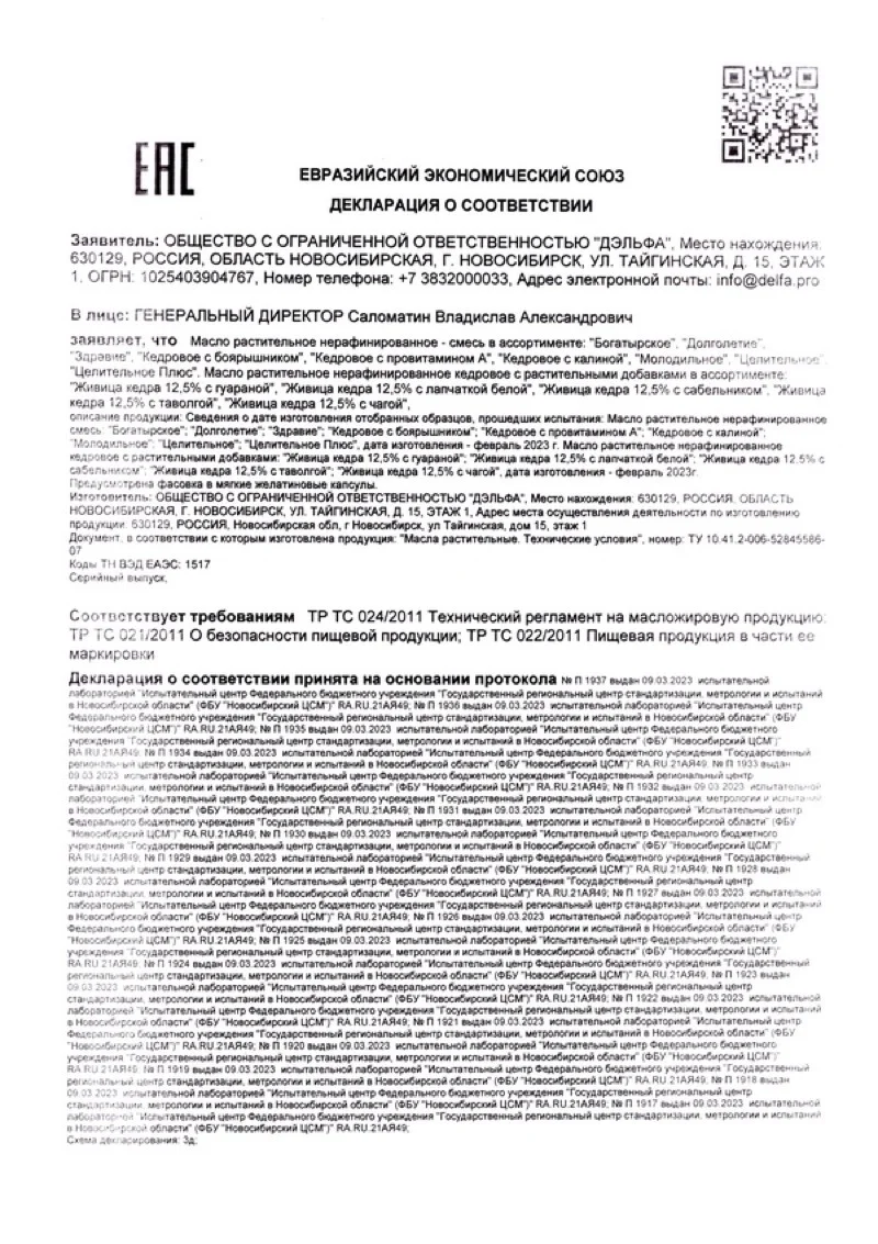 Состав: Смесь ценнейших нерафинированных растительных масел – горчичного, льняного, подсолнечного и кунжутного, полученных методом холодного прессования.