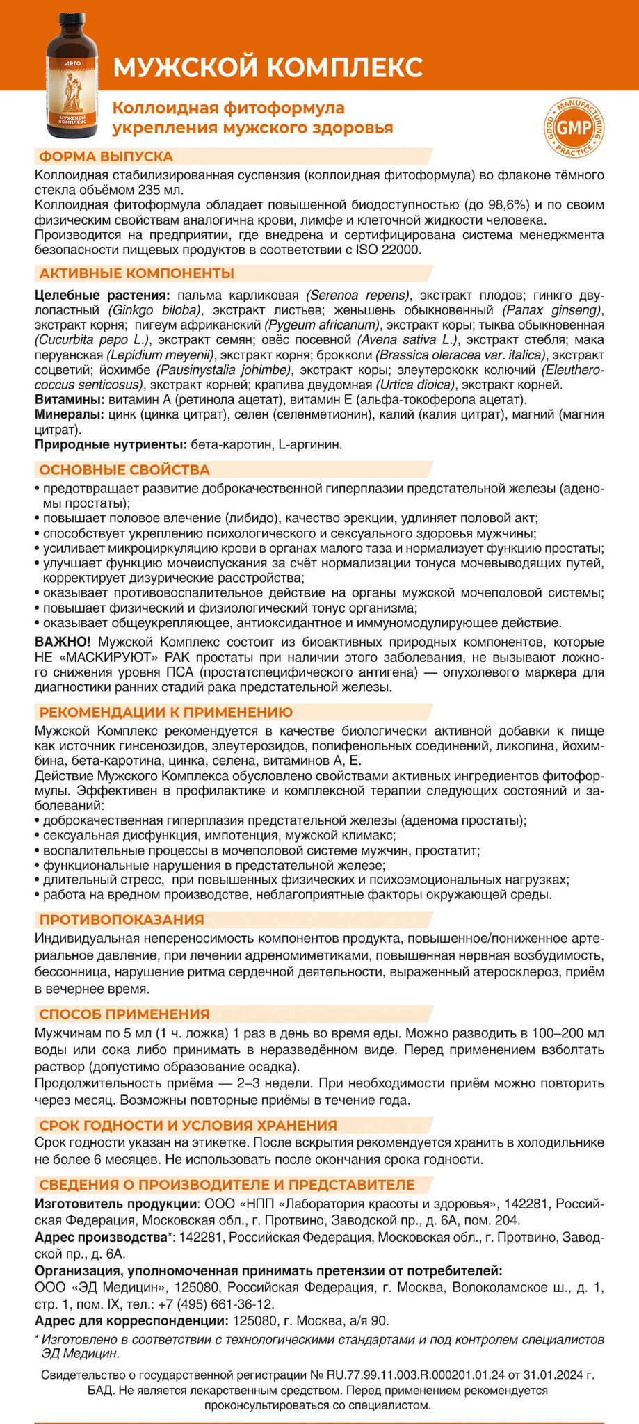 Мужской Комплекс коллоидный, Эд Медицин (Арго), 235 мл