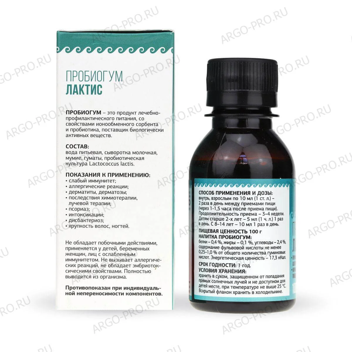 Состав: вода питьевая, сыворотка молочная, мумие, гуматы, пробиотическая культура Lactococcus lactis. Гуматы раствора «ПРОБИОГУМ лактис» создают необходимые условия для активного роста и развития Lactococcus lactis, т.к. большинство лактобактерий нуждаются при развитии в ряде редких аминокислот и минералов. Накапливающиеся молочная, уксусная, сорбиновая, пропионовая и бензойная кислоты обладают антимикробным действием, бактерии выделяют витамин В12 , витамин С, тиамин, рибофлавин, биотин. Это позволяет компенсировать недостаток витаминов, обеспечивает постоянную нормальную работу желудочно-кишечного тракта, его защиту от посторонних бактерий и хороший иммунитет, особенно у детей. При употреблении лактобактерий наблюдается повышение содержания лизоцима в крови, бактерицидной активности сыворотки крови, фагоцитарной активности, стимуляция выработки иммуноглобулинов. Лактобактерии лактис продукта способствуют профилактике и лечению аллергических заболеваний (атопический дерматит, аллергический ринит), они обезвреживают токсины и мутагены экзо- и эндогенного происхождения, способствуют снижению гистамина крови. Устраняют хроническую и пищевую интоксикацию. L. lactis и гуминовые вещества, присутствующие в продукте, могут играть ключевую роль в гармонизации иммунитета, предотвращении интоксикации, нормализации работы кишечника человека и усвоении необходимых питательных веществ.