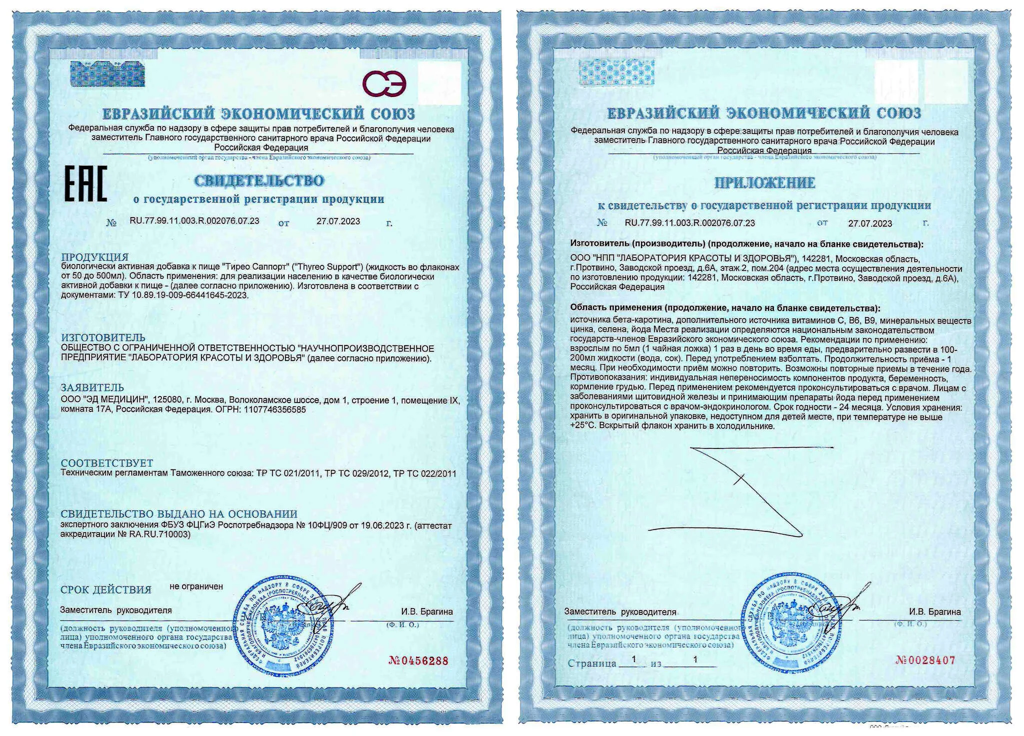Врачи рекомендуют Тирео Саппорт (или Thyreo Support Colloidal) всем, у кого есть проблемы с щитовидной железой. Морские водоросли, которые тут присутствуют, это бесценный источник натурального йода, который усилен коллоидными макро- и микроэлементами.