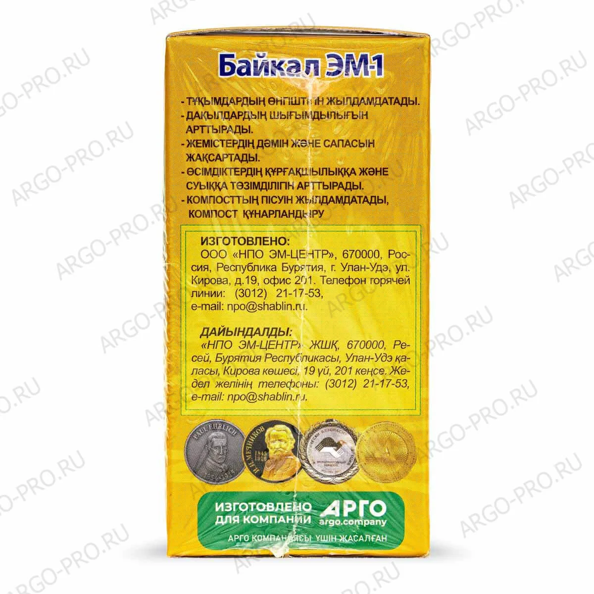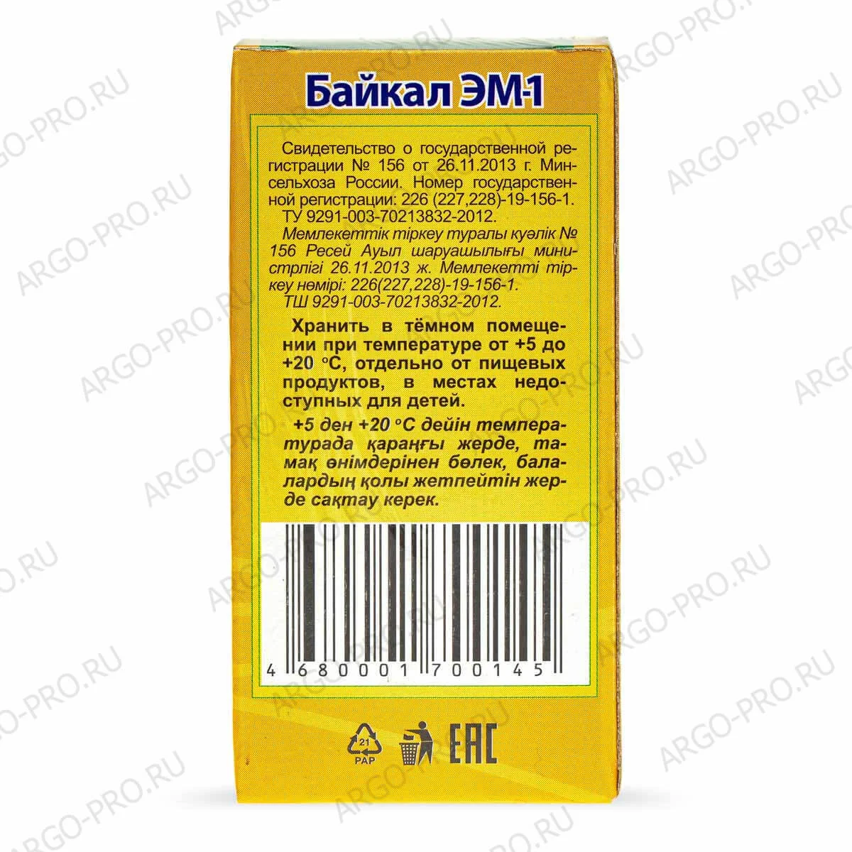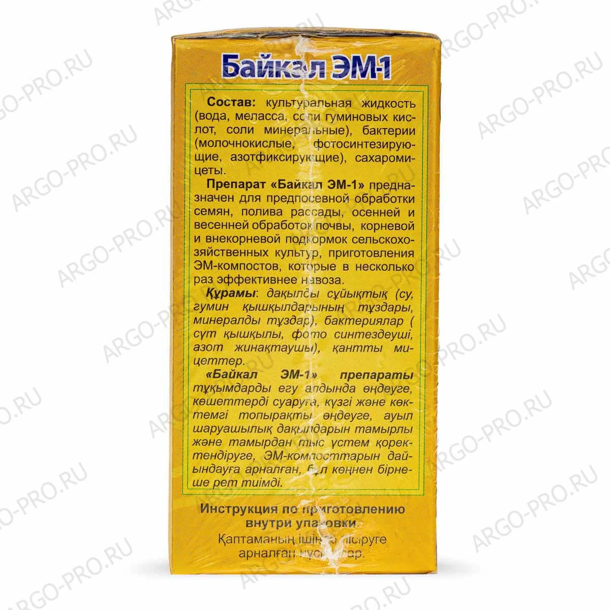 Форма выпуска: Готовый ЭМ-препарат представляет собой желто-коричневую (в зависимости от питательной среды) жидкость с приятным молочно-кислым запахом. Кислотность ЭМ-препарата (рН): 3,2-3,8. ЭМ-препарат следует хранить в закрытой емкости без доступа воздуха, в прохладн